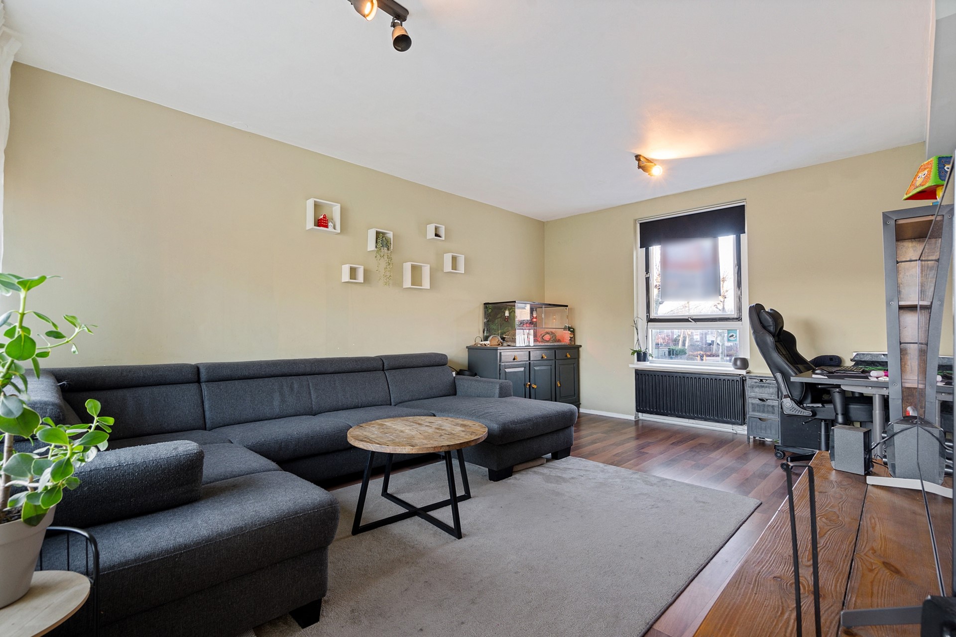 Gezellige lichte woonkamer en woonkeuken met grote raampartijen die zorgen voor veel natuurlijk licht.