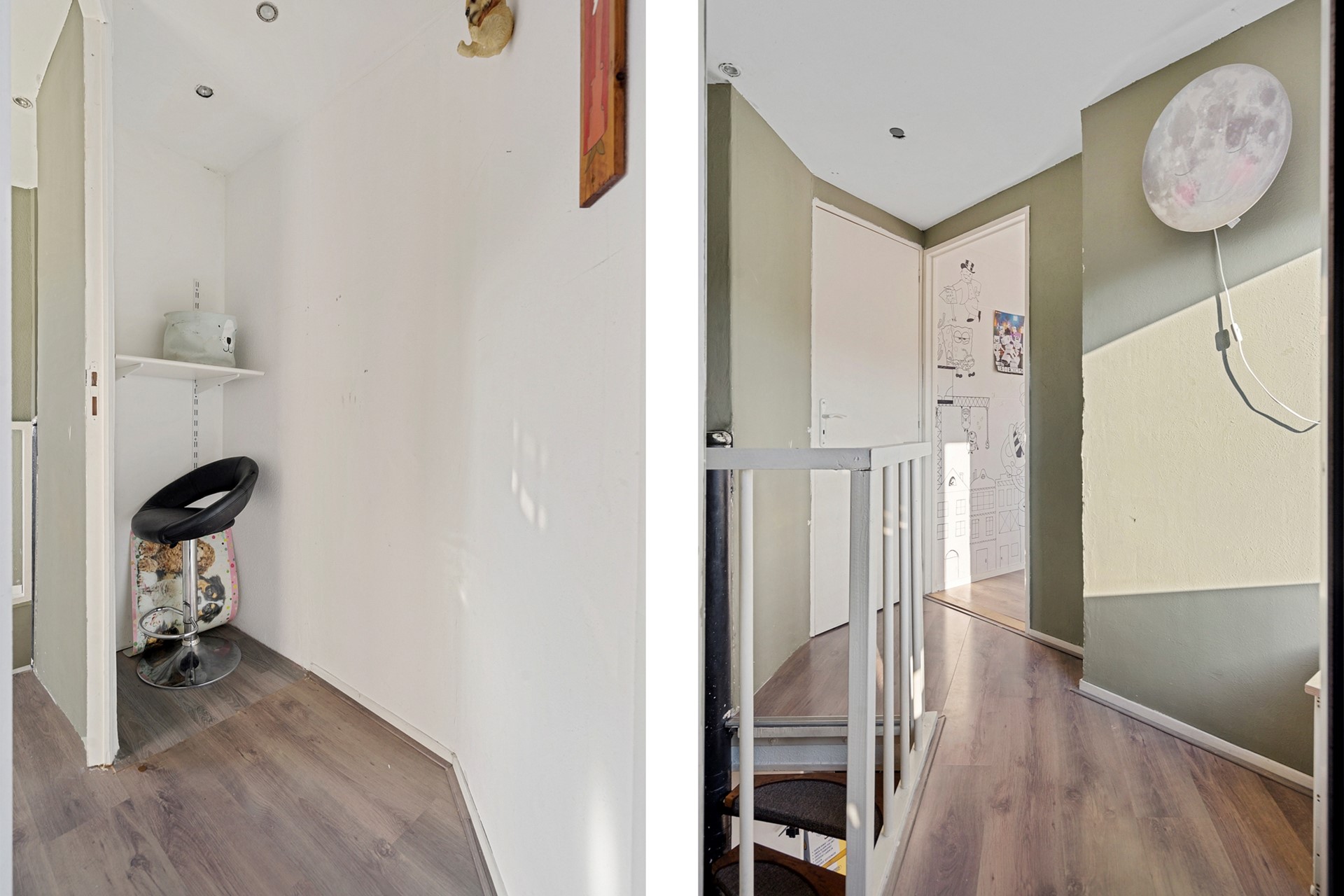 Overloop en maar liefst 4 slaapkamers zijn bereikbaar vanuit de woonkamer via de wenteltrap.