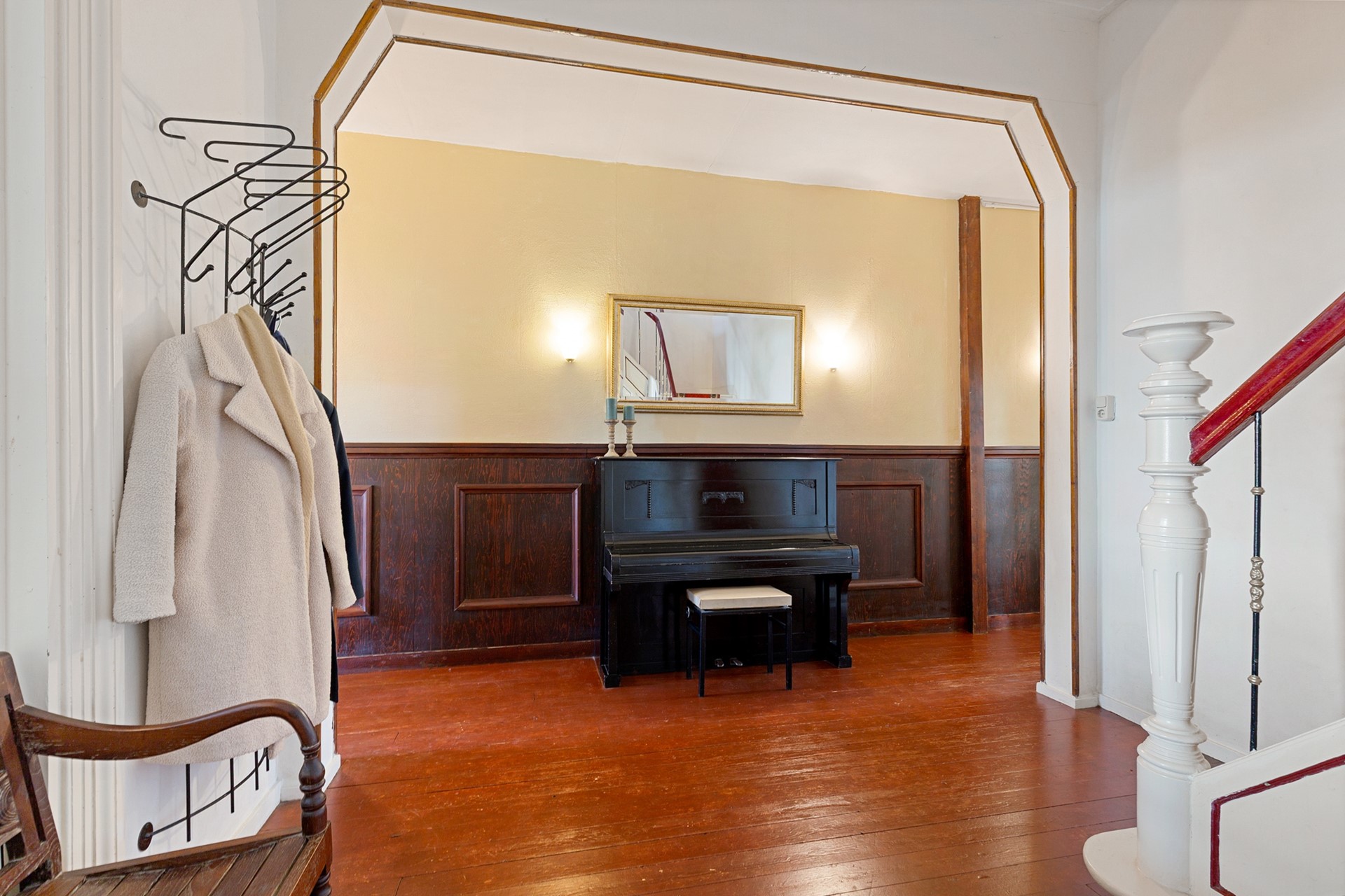 Via de ruime entree met hal, kelder, toilet betreedt u direct het indrukwekkende, royale trappenhuis, een echte blikvanger die de geschiedenis van de woning benadrukt, authentieke houten vloer.