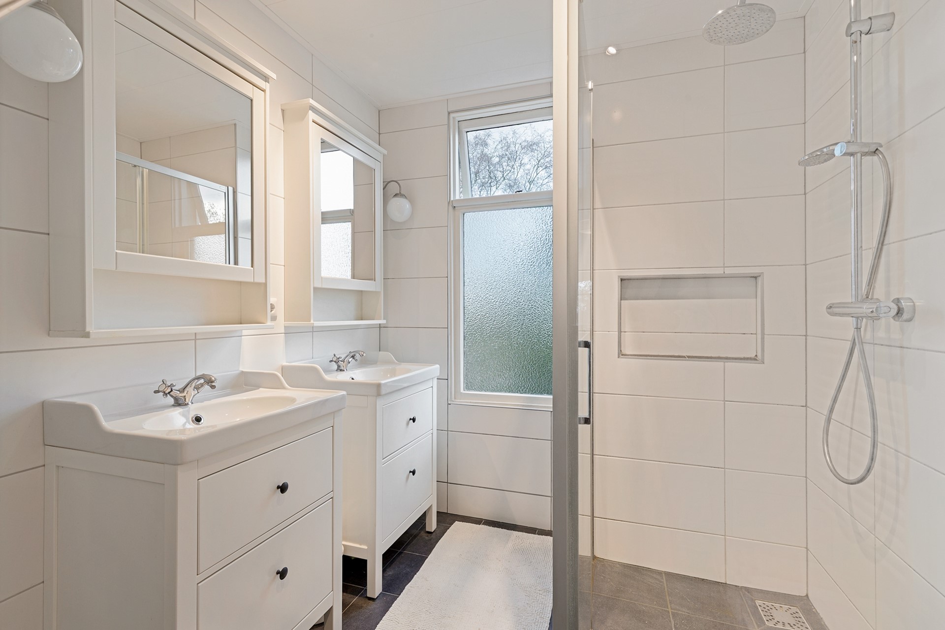 De badkamer biedt optimaal comfort, 2 wastafels én een separate inloopdouche met toilet.